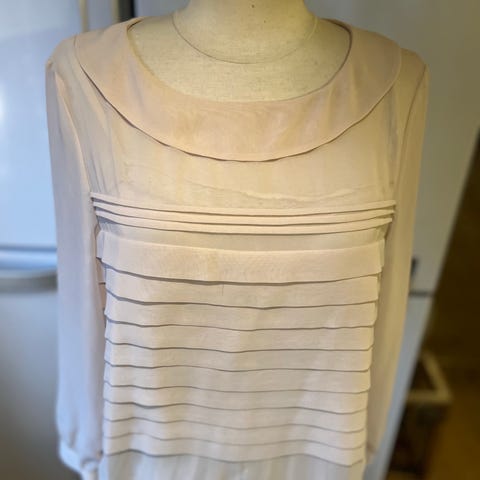 En helt nydelig bluse fra MANGO i en aldeles skjønn rosa farge. Blusen er merket med str. XS, men passer også fint en str. S. Flott med «legg»rundt hals og i armer. Lukkes med knapp bak i nakken. Blusen har kun vært brukt en gang.
