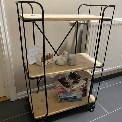 3 stk solide hyller av stål selges billig. Kan brukes til lagring av dekk ol.