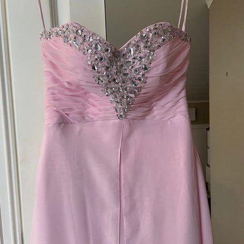 Denne nydelige ballkjolen i rosa med glitter er et perfekt valg for spesielle anledninger. Den har en fantastisk glans og et elegant design som lyser opp ethvert rom. Kjolen må strykes for å få frem sitt beste utseende, men når den er klar, gir den en utrolig vakker og glamorøs look. Et fantastisk plagg som garantert vil gjøre inntrykk!