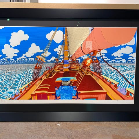 Trykket er innrammet flytende med matt sort trelist, og har antirefleks RF75 kunstglass.