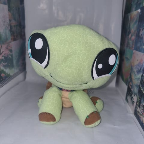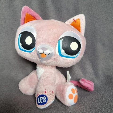 Ca. 18 x 13 cm Autentisk Hasbro LPS kjæledyr. Littlest Pet Shop plysj kosedyr. Et flott tillegg til alle Littlest Pet Shop-samlere - en rosa/hvitaktig kanin/kanin kjæledyr med grønne øyne og søte, myke ører med lange løkker. 2008 Hasbro