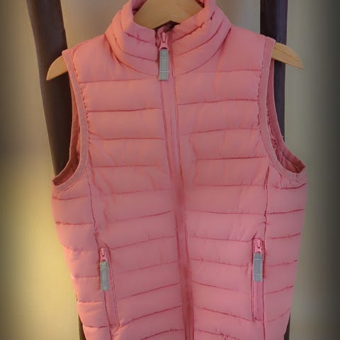Den er lite brukt, men har fått et hull bak. Kan sende med strykelappe (stjerne) hvis ønskelig.