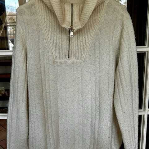Offwhite. Kjøpt for å være oversized til meg som er str S, ble litt for stor. Brukt et par ganger.