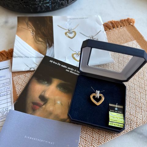 Gull anheng og øp m/ diamant uten kjede