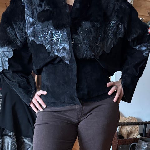 Denne jakken kjøpte jeg på en vintagebutikk i Vilnius for ti år siden. Den er litt kort i ermene for meg. Jeg hadde planer om å skjøte på noen mansjetter, men kom aldri så langt. Jeg har derfor kun brukt den en gang selv.