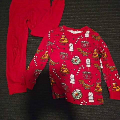 En pyjamas i myk velur fra H&M. Str 110/116. Pent brukt.