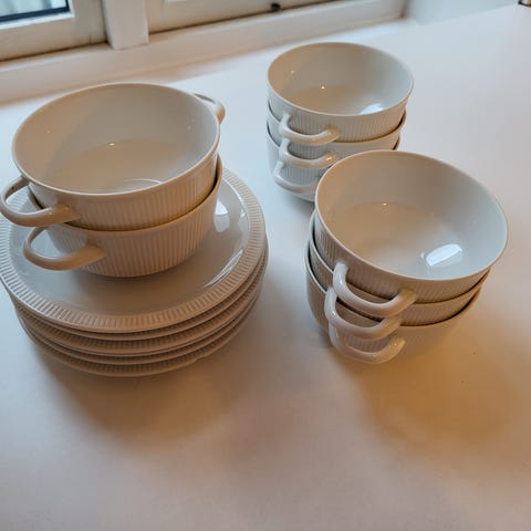 8 middagsfat og 8 skåler fra merket RAK Porcelain selges for 1000kr samlet.