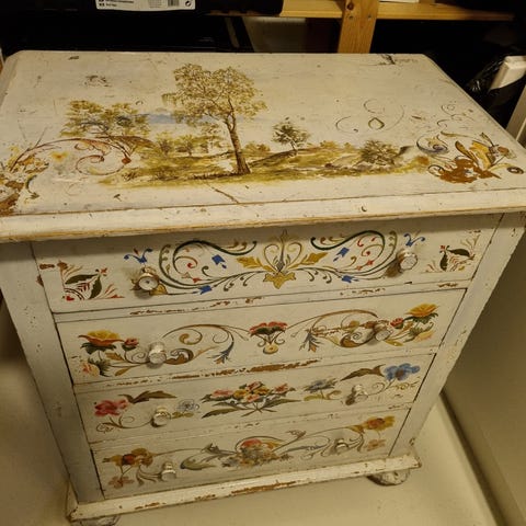 vakkert praktisk eldre lite skap selges. vil passe fint på en hytte eller lignende. jan sendes men skal sjekke opp litt først