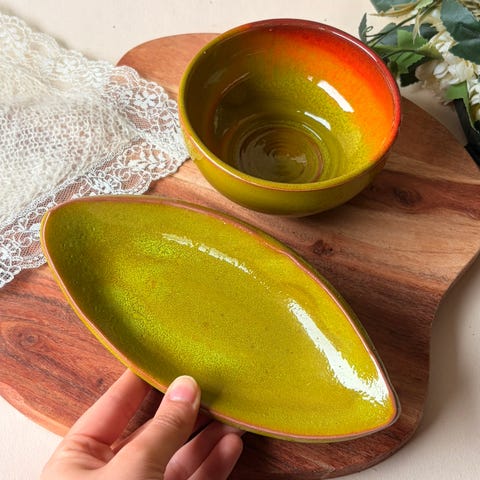 💛 Håndmalt keramikkskål/ bolle– Made in Korea, giftfritt