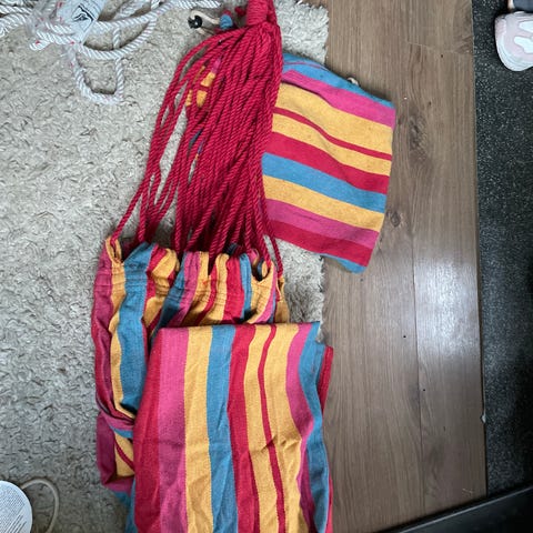 Hengekøye med carabinhook i begge ender (obs medfølger ikke noe og henge opp med)