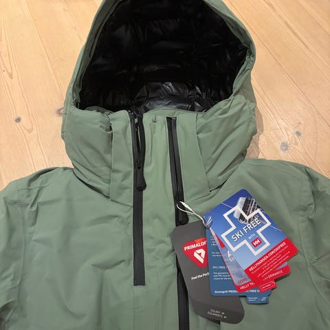 Varm og fin vest med knappelukking, sidelommer, innerlomme og hette med snøring! Hette og øverste del er laget av 100% resirkulert nylon, kroppen av 100% resirkulert polyester ripstop og fôret er 100% resirkulert dun!