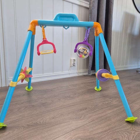 Jabadabado aktivitets stativ. Helt nytt, kan pakkes sammen. Enkel å ta med seg, fin og lett å feste leker til.