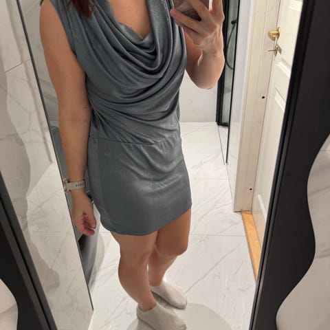 Kult assimetrisk minikjole fra "SHEIN BAE", str.M, men mindre i størrelsen, skal passe S/XS, 94%polyester, 6%elastan.
