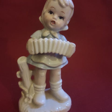 Sjarmerende vintage jente figurine til å henge på veggen.