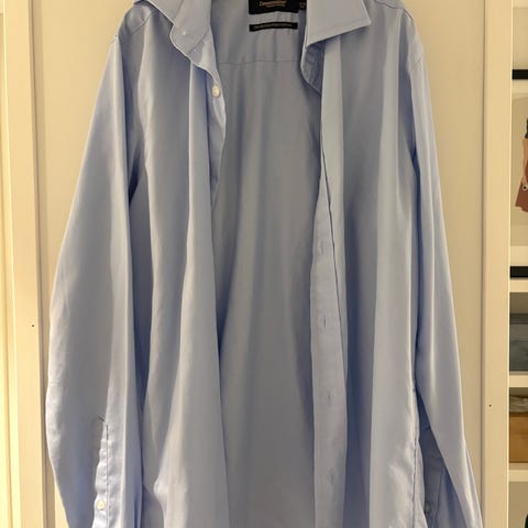 Pen, klassisk dress-skjorte, lys blå. Slim fit-modell i str. XS (35/36). Er brukt av gutt 14 år/konfirmant.