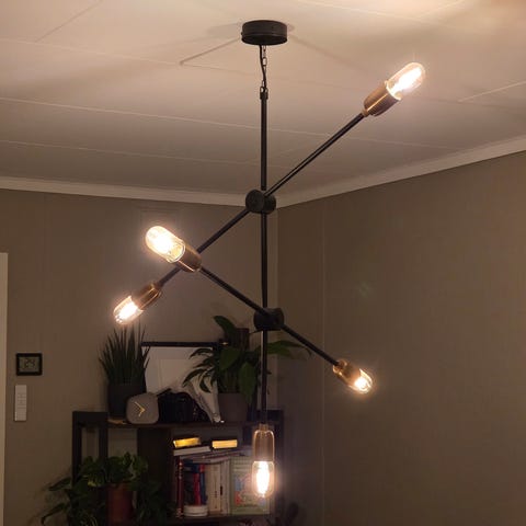 Molecular Pendel Lampe 5-lys fungerer ikke kun som lyskilde, men også som et vakkert dekorativt element i innredningen. Den karakterfylte lampen gir rommet en personlighet - og lyser opp med et praktisk og ubrutt lys. Lampens minimalistiske design passer lett inn i den skandinaviske innredningen, der det enkle og rå designet er i fokus og hvor messing fortsatt er en hit. Kombinasjonen av den svarte nyansen og detaljene i messing, gir en moderne kant til det enkle designet.