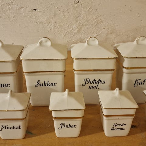 Vintage krukker til krydderhylle