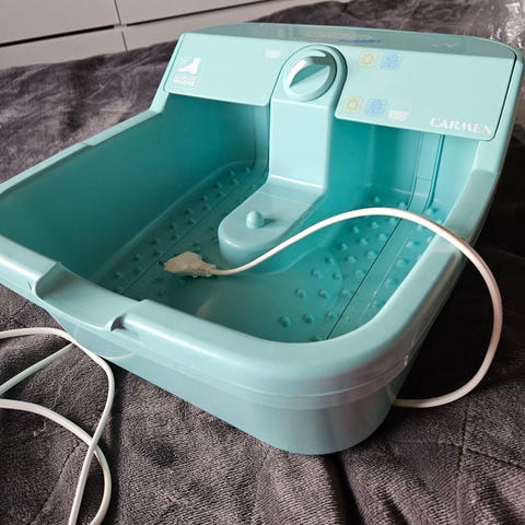 Selger et Bomann fotbad med fjernkontroll og diverse funksjoner. Mulig batteri på fjernkontroll må skiftes. Knapt testet, men fungerer som det skal.