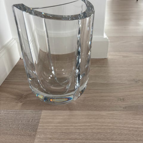 Blå krystall vase. Høyde 21,5 cm og diameter 13,5 cm. Tung ca 2,2 kg. Kan sendes, kjøper betaler frakt.