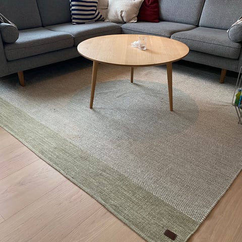 Selger pent brukt Hay Peas Ull gulvteppe str 200 x 300 cm. Farge, medium grå/ grey. INGEN FLEKKER. På bilde 4 vises en skygge fra taklampa.