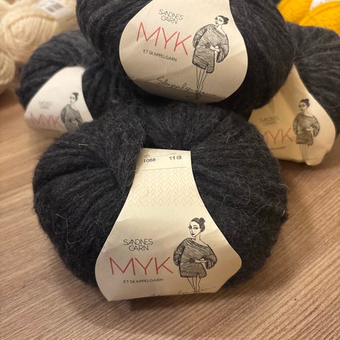 Påbegynt nøste fra knitting of olive. 70% bomull og 30% merino.