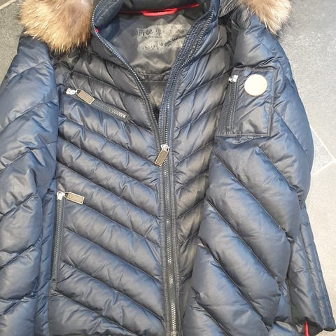 Lite brukt, god og varm gåsedunjakke halvlangt til salgs. Beige med litt brune detaljer. (Fargen er finere i virkeligheten en på bilde).