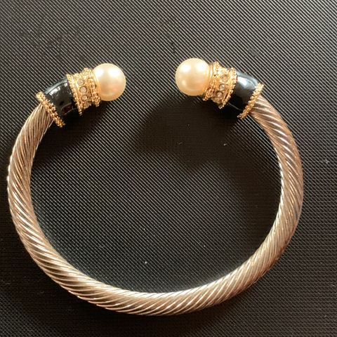 1 kjede med mørkere stål, deler av kjede i stoff og med perler
