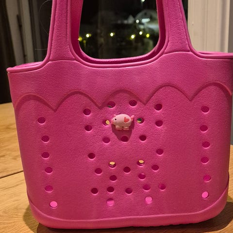 Veske. Fint brukt Hull som i crocs, til å sette i pins. Følger med ein stk.