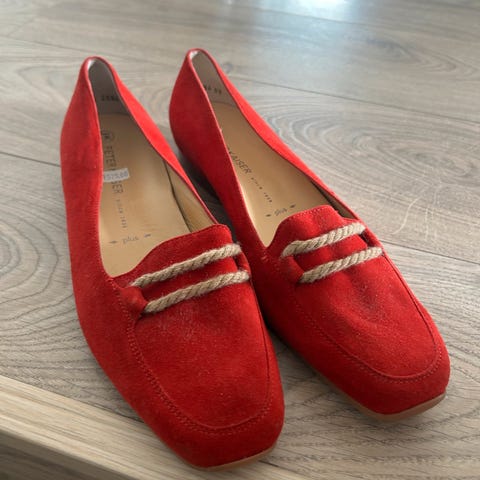 Ikoniske Michael loafers fra Repetto. Fargen heter Drama og er nydelig dyp rød. Størrelse 36. Aldri brukt. Fått lagt på gummisåler hos skomaker, så skoene tåler norske værforhold. Nypris 4600kr.