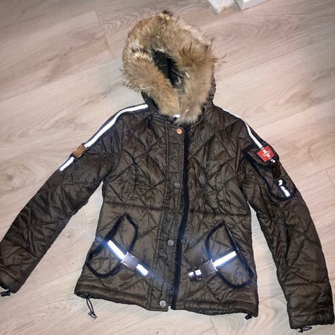 Lekker ytterjakke i mørkeblå str S fra merket Swiss Chriss. Lite brukt. Fremstår som ny. God og varm, eksklusiv jakke!