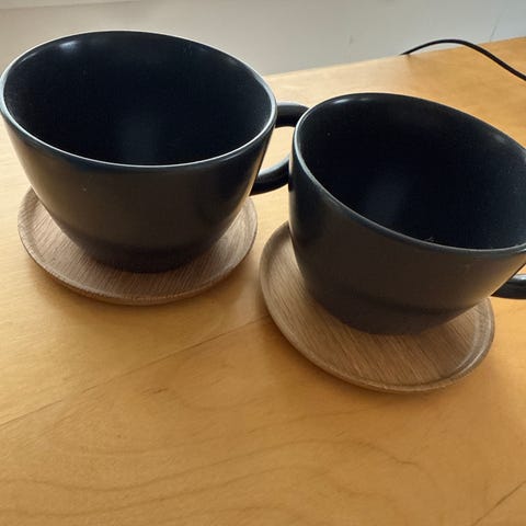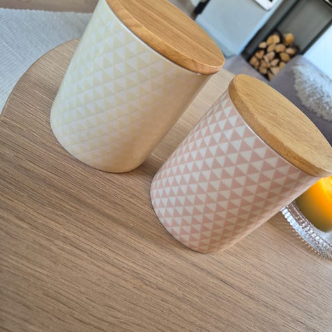 3 stk Högnäs keramikk krus med trelokk. 1 svart og 2 grå. H: 11 cm uten lokk.Kr 125 pr stk.