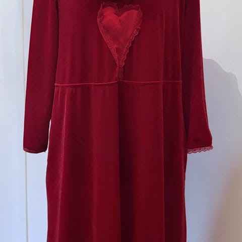 Hjemmesydd kjole/tunika i ganske tynn jersey; lommer i sidene.