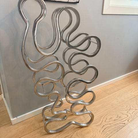 Lager også hyller i svart/brun beiset furu med aluminium rør. Moduler som er 250mm dype og høyde tilpasset rommet. 2 flasker i dybden/per høyde. Tilpasset flasker med diameter opp til 90mm (Champagne/Burgund). Hver modul er 330mm bred innvendig.