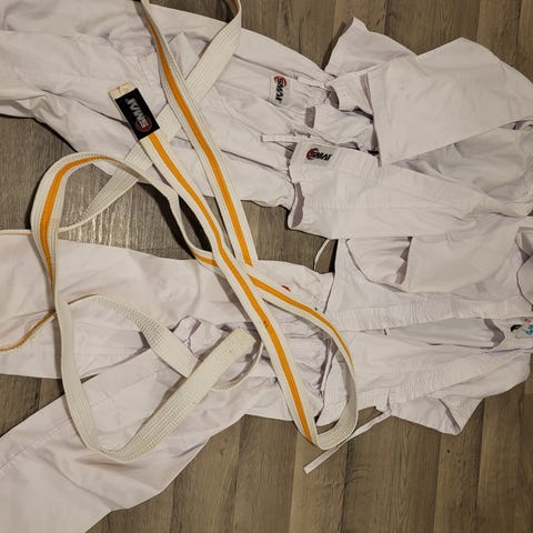 Hvit kimono selges. Gutten vokste ut av denne størrelsen.