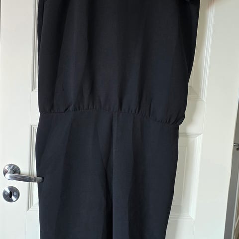 Carmen Jumpsuit fra HiiL Studio er en elegant og stilig jumpsuit i klassisk sort farge. Jumpsuiten har åpen rygg med dekorativ skjæring. Ledig i toppen med rund hals og sitter fint over rumpe og lår med vide ben. Lukkes med glidelås i siden.
