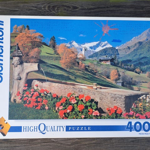 Puslespillet tilhørte min nå avdøde Mamma, men jeg tror at alle brikkene skal være på plass. Selges billig siden hun har skrevet på puslespill og lokk, for å gjøre puslinga enklere.