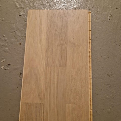 41,6 m2 med eikeparkett til salgs. Limes til underlaget. Selges for kr 400 pr m2.