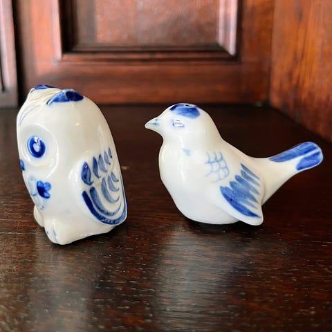 To lekre fugler fra Tonala Mexico selges. Laget av keramikk. I god stand, noen krakeleringer på den ene, men ses kun på nært hold. Selges til hbo 150,- per stk, eller 270,- for begge samlet.