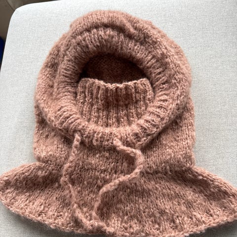 Hjemmestrikket hoodie selges kr 300