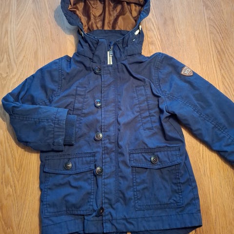 Jakken er i fin stand, har avtagbar hette og dyremønstret, foret stoff.