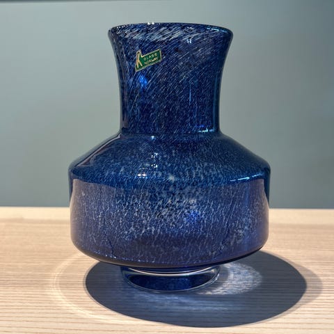 Vasen er dekorativ og vintage og er produsert ved Magnor glassverk . Den er blank og fin og har kun stått til pynt , den har aldri vært brukt . Den har en sort bunnfarge med nydelig dekor . Vasen har følgende mål :