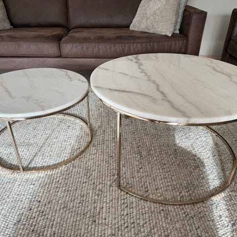 Selger et fint sofabord med marmor plate. Selges da vi ikke har plass til det lengre. Bordet er i god stand, men har noen «kopp» merker som man kan ses i vinkellys/sollys ellers synes det ikke!