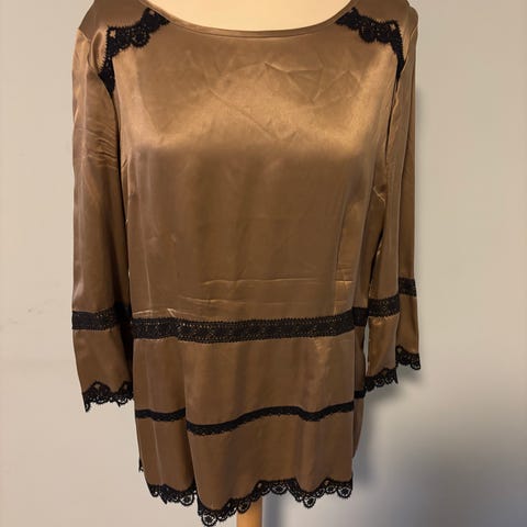 Ubrukt, nydelig støvrosa Sisley bluse str M. Italiensk design. Fine grå perlekanter og 3/4 arm.