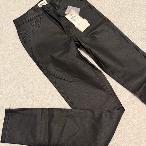 Ny med lapp, imitert slange skinns bukse i str L. Kjempe kul bukse, men ble for stor for meg og var for treig å levere tilbake. Fra Only.