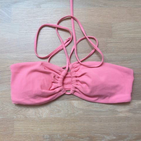 Rosa bikinioverdel med knyting i nakken. Brukt en gang. Kun overdelen.