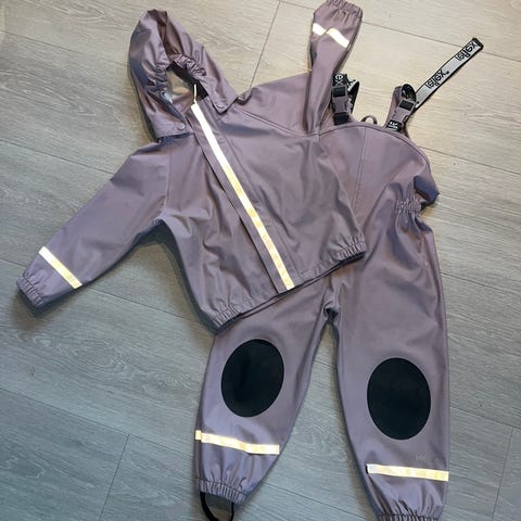 Regnsett fra reflex, lite brukt men fått ett par rosa flekker(ikke forsøkt fjernet). Parkdress fra reflex, litt mørkere parti på rumpe og knær. Og fleece sett