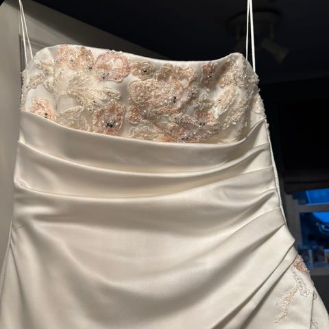 Maggie sottero brudekjole str 6 selges rimelig. Kjøpt i USA. Med perler foran og snørerygg. Nydelig design og helt som ny!.