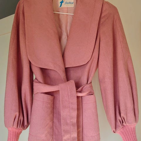 Veldig elegant kåpe fra Svenske Gunilla Ponten. Fin kontrast mellom det glatte stoffet og detaljene i fuskepels. Tidløs fasong og en flott hette som er praktisk på kalde dager, men først og fremst fremhever kåpens elegante fasong over skuldrene.
