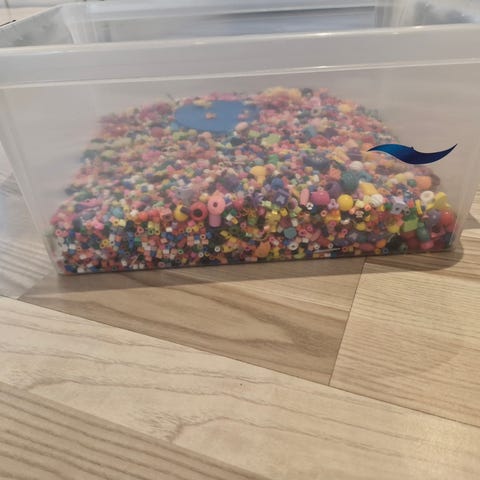 En liten boks med perler, kommer med perlebrettene på bilde :)