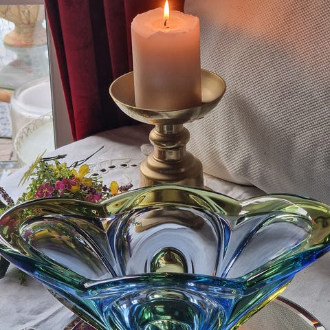 Vasen Skifter farge alt etter hvordan Lyset treffer.
